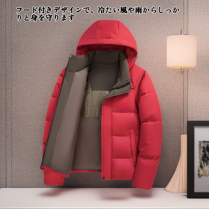 メンズフード付きダウンジャケット