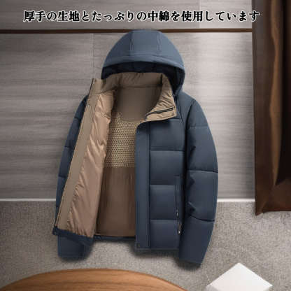 男性中高年対象 厚地フード付き綿入りコート