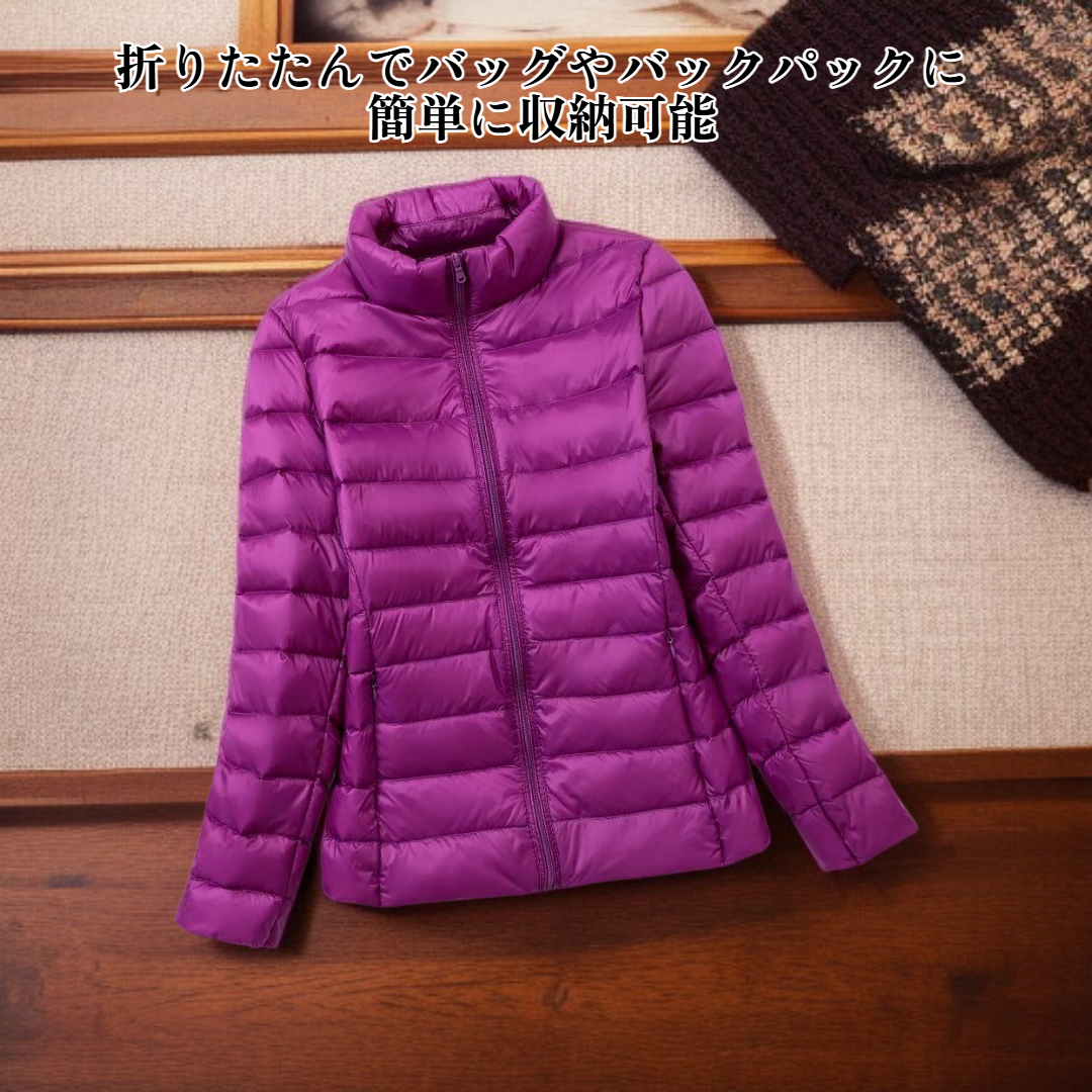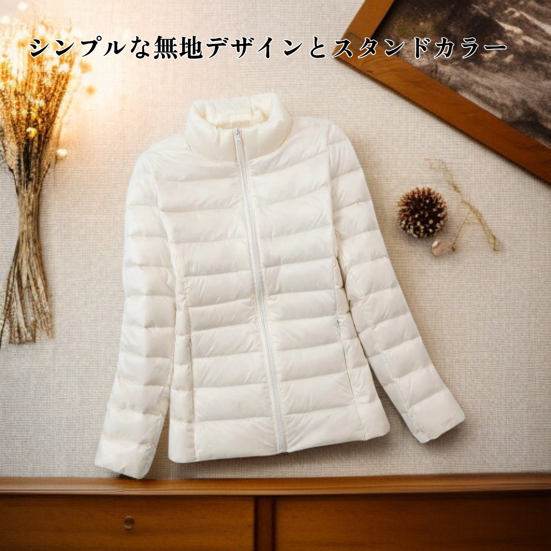 軽量ポータブルダウンジャケット レディース スタンドカラー シンプル無地