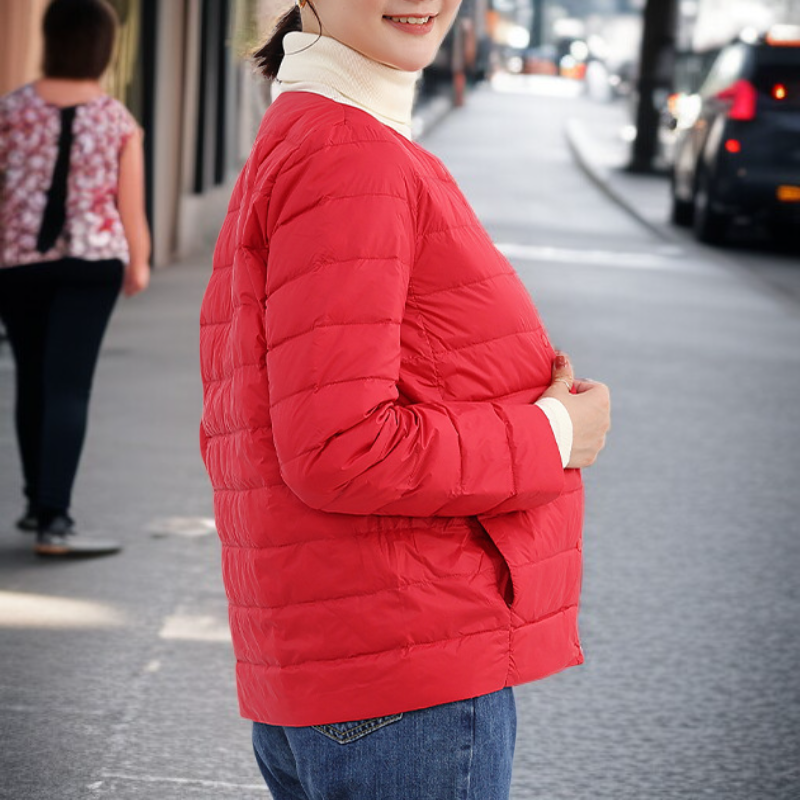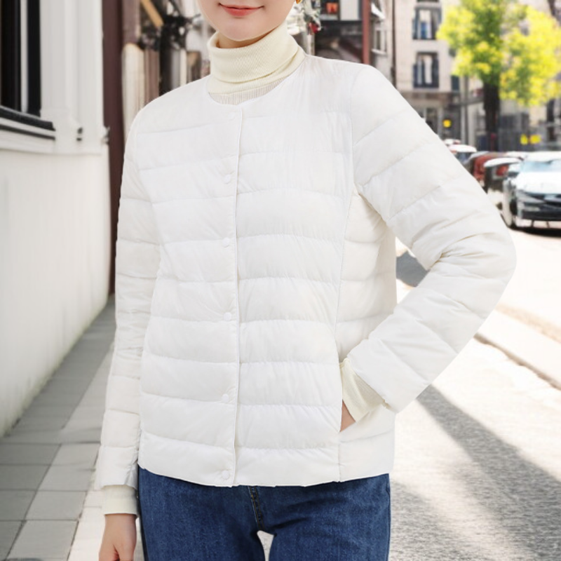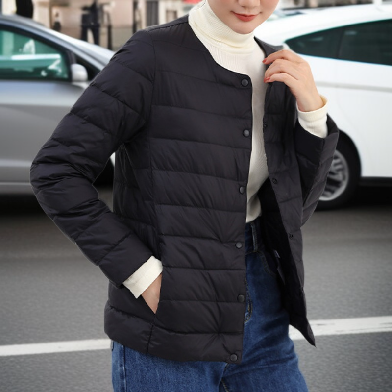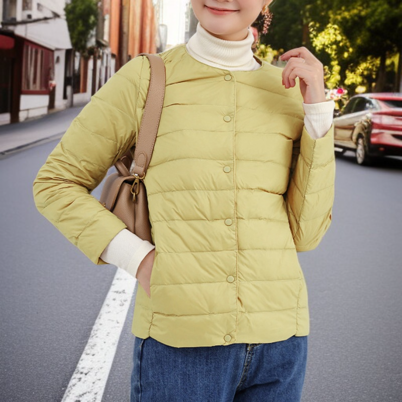 ● 軽量で薄手なのにしっかり暖かい、秋冬にぴったりの新作ラウンドネックダウンジャケットです。